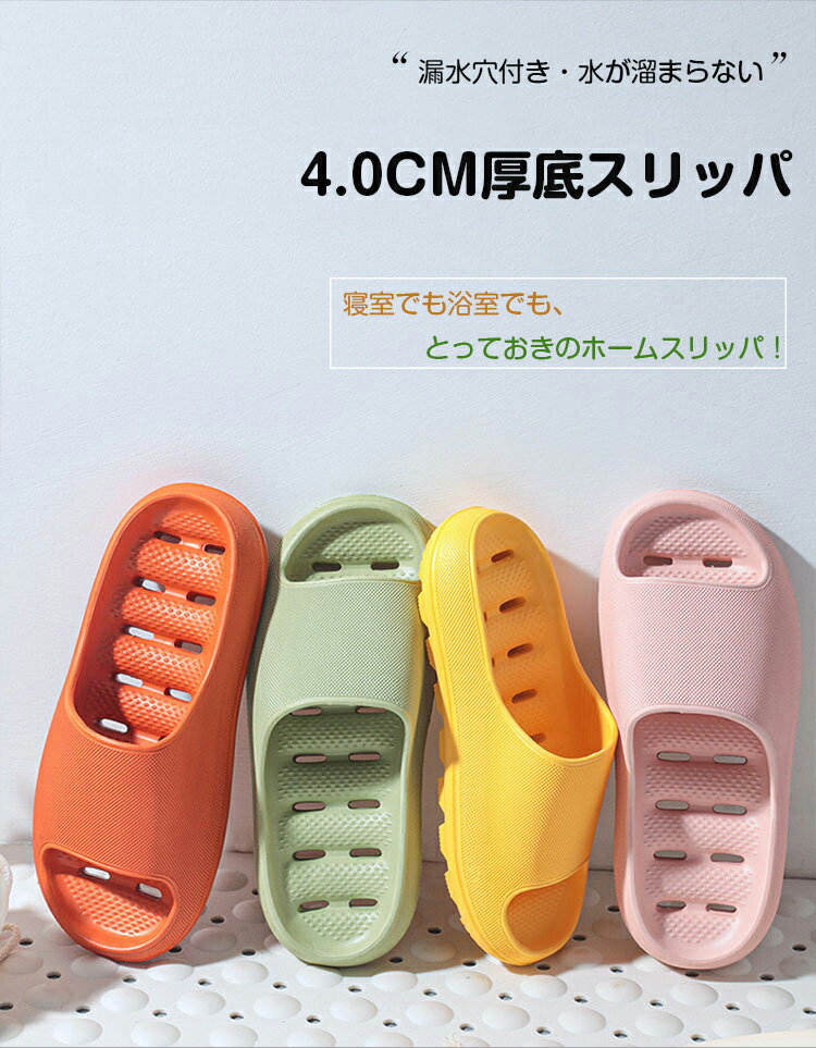 商品概要 商品名 ・速乾厚底ふわ楽ベランダスリッパ 素材 ・EVA 商品サイズ ・S(約25cm)、M(約26cm)、L(約27cm)、XL(約28cm) カラー ・ブラック、ネイビー、グレー、イェロー、ピンク、グリーン、オレンジ 商品説明 底に空いた穴から、水が快適に抜けるので、雨上がりでも水がたまらずすぐ履いて頂けます。