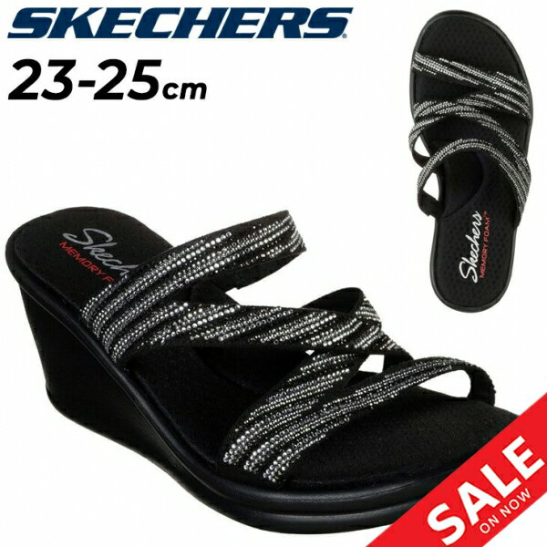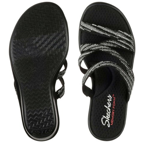 クロスストラップにさりげなく煌めくラインストーンを施したウエッジヒールサンダル 非常にやわらかい形状記憶素材と肌触りのよい素材を組み合わせた 「Skechers Memory Foam」のフッドヘッド搭載。