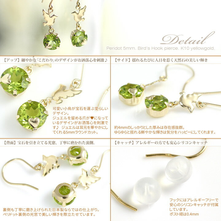 シリコンキャッチ使用石天然ペリドット5mm(8月の誕生石/グリーン/黄緑色の宝石)×1石の左右ペアモチーフ小鳥 鳥 バード チャーム ハート爪 動物モチーフ製造国産 日本製備考【ギフトシーンお相手】家族 母 お母さん 娘 妻 嫁 姉 妹 姪っ子 女性 彼女 女友達 友人 知人 お世話になっている方 レディース 中学生 高校生 大学生 社会人 OL キャリアウーマン 10代 20代 30代 40代 50代 60代 8月生まれ。