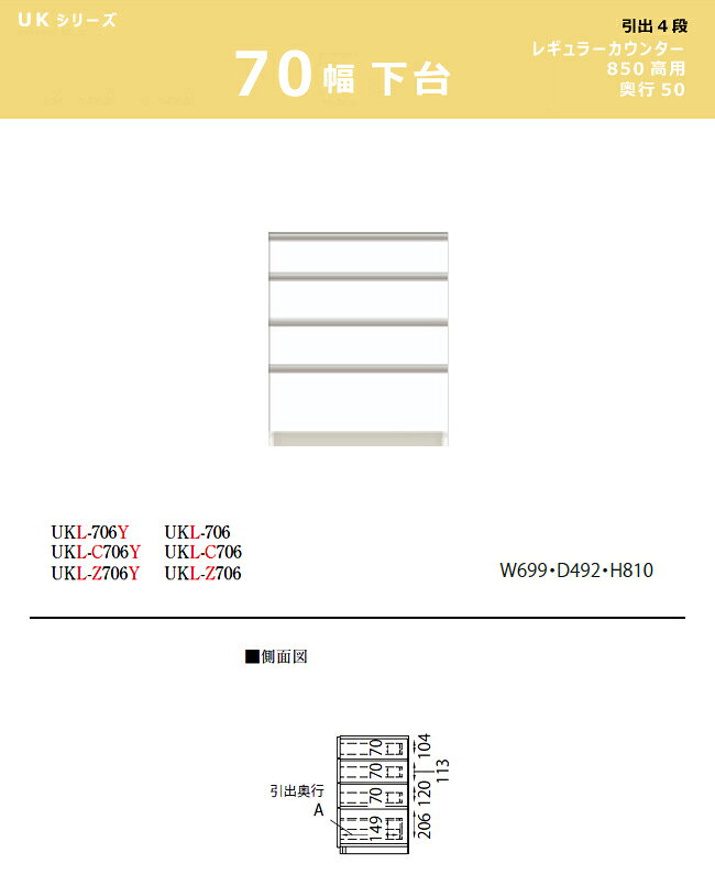 商品仕様 素材・カラー パモウナ 下台 UKシリーズ UKL-706Y サイズ W699×D492×H810 重量 備考 パモウナ UK【下台/70幅/50奥行/85高用/引出4段】引出し ダイニングボード 食器棚 UKL-706Y カラーオーダー 天然木 ウォールナット 組み替え オーダー 関連 送料 開梱設置無料! 納期 定番色:約2〜3週間 カラーオーダー色:約4〜5週間 天然木突板:約5〜6週間 ※正確な納期につきましては、お買い上げ後にメールさせていただきます。