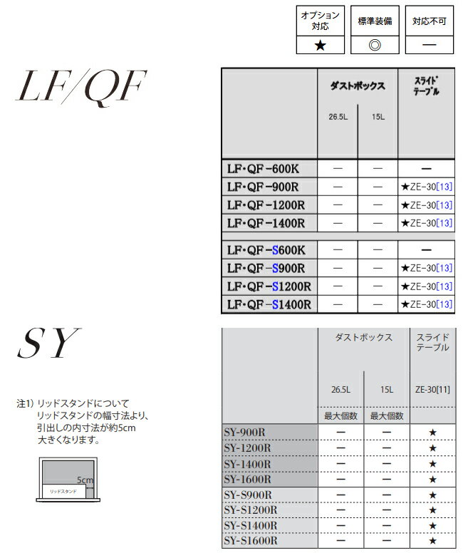 各商品ページのダストボックス対応表を参考にしてください。