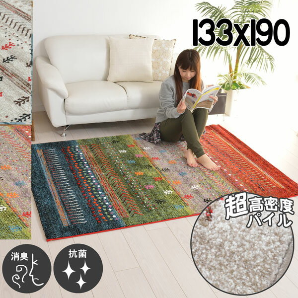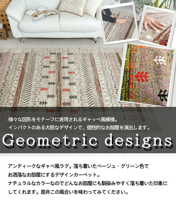 ■スタッフコメント温かみあるギャッベ風デザインラグ!高密度パイルなので程よい弾力としっかりとした厚みで踏み心地も抜群!さらさらとしているので夏、ベタつく心配もいりません!見た目も触り心地も高級感があり、人が集まるリビングにはぴったりのラグです♪