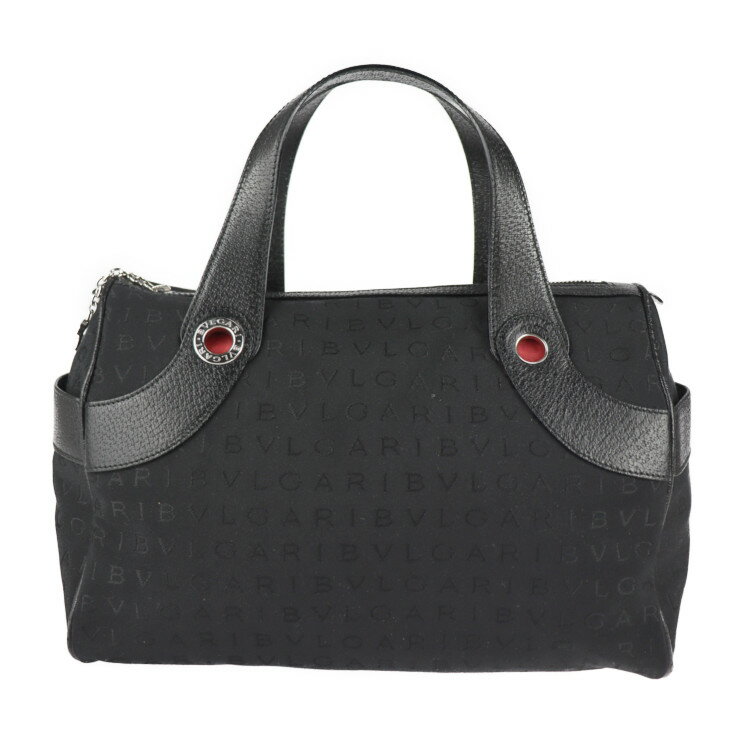 超美品 BVLGARI ブルガリ ロゴマニア ハンドバッグ 22748 キャンバス レザー ブラック ミニボストンバッグ【本物保証】【中古】