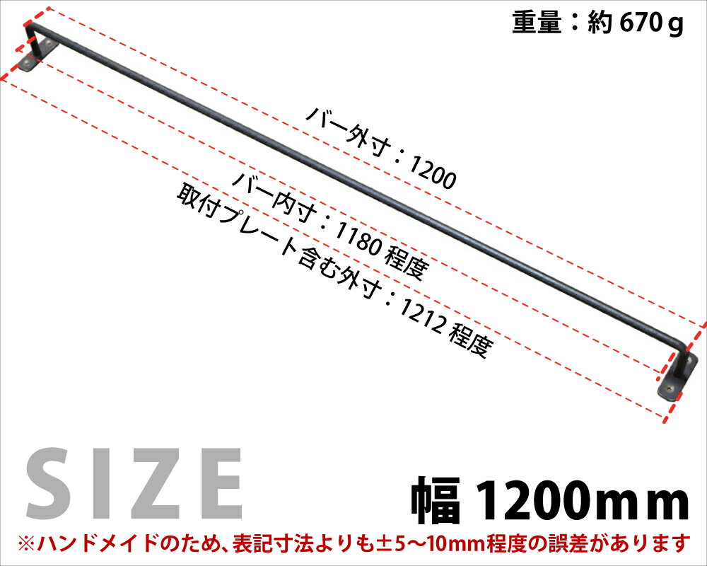 【黒皮鉄シリーズ】アイアンハンガーバー(ワックス仕上げ)幅1200mm×奥行50mm ※ビス付きアイアンバー ニッチ バー ブラック レール タオルハンガー タオル掛け 天井 物干し カーテン おしゃれ 国産 鉄 インダストリアル風 DIY パーツ 【小型商品】